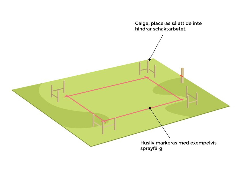 Innan schaktarbetet startar behöver du veta grundens placering på tomten och du behöver även veta hur grunden ska placeras i höjd.